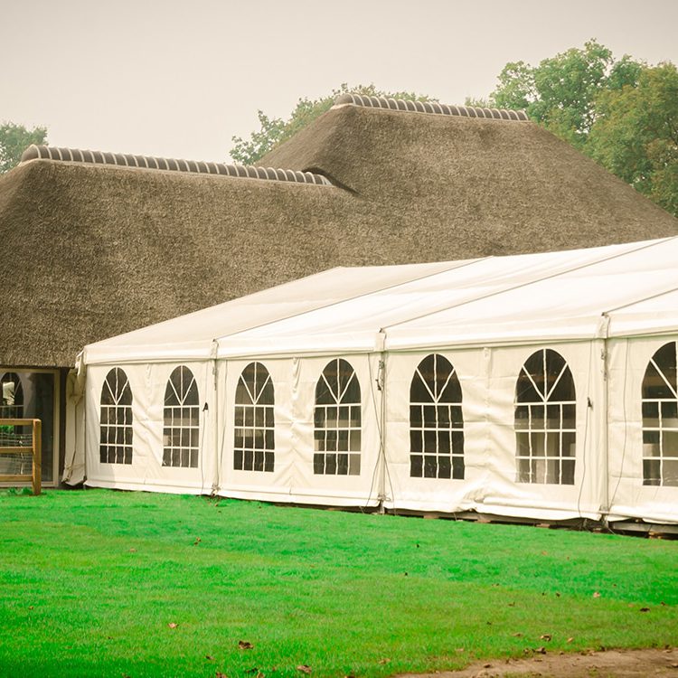 Het handige van de parttenten die u bij ons kunt huren is dat de zijwanden snel in- en uitklapbaar zijn. Sowieso zijn de wanden uitgerust met transparante raamgedeelten zodat er altijd genoeg licht in de partytent valt. Door de wanden op te rollen kunnen mensen echter zeer snel en gemakkelijk in- en uitlopen. Er is sprake van een dynamisch overgang van buiten naar binnen. Mocht er een regendruppeltje vallen op uw feest in Stiphout, dan is iedereen snel in staat om beschutting te zoeken en blijft iedereen droog.